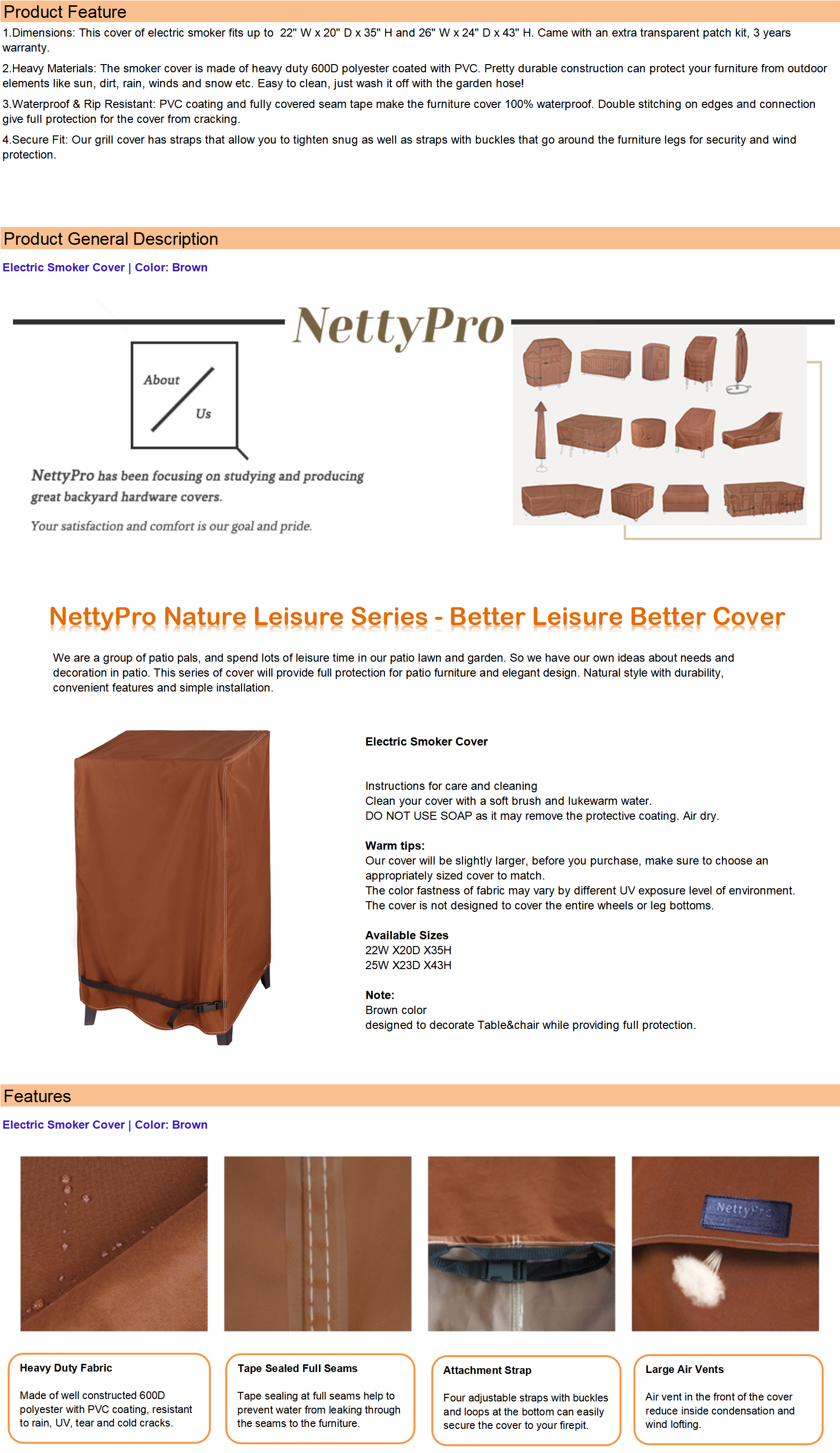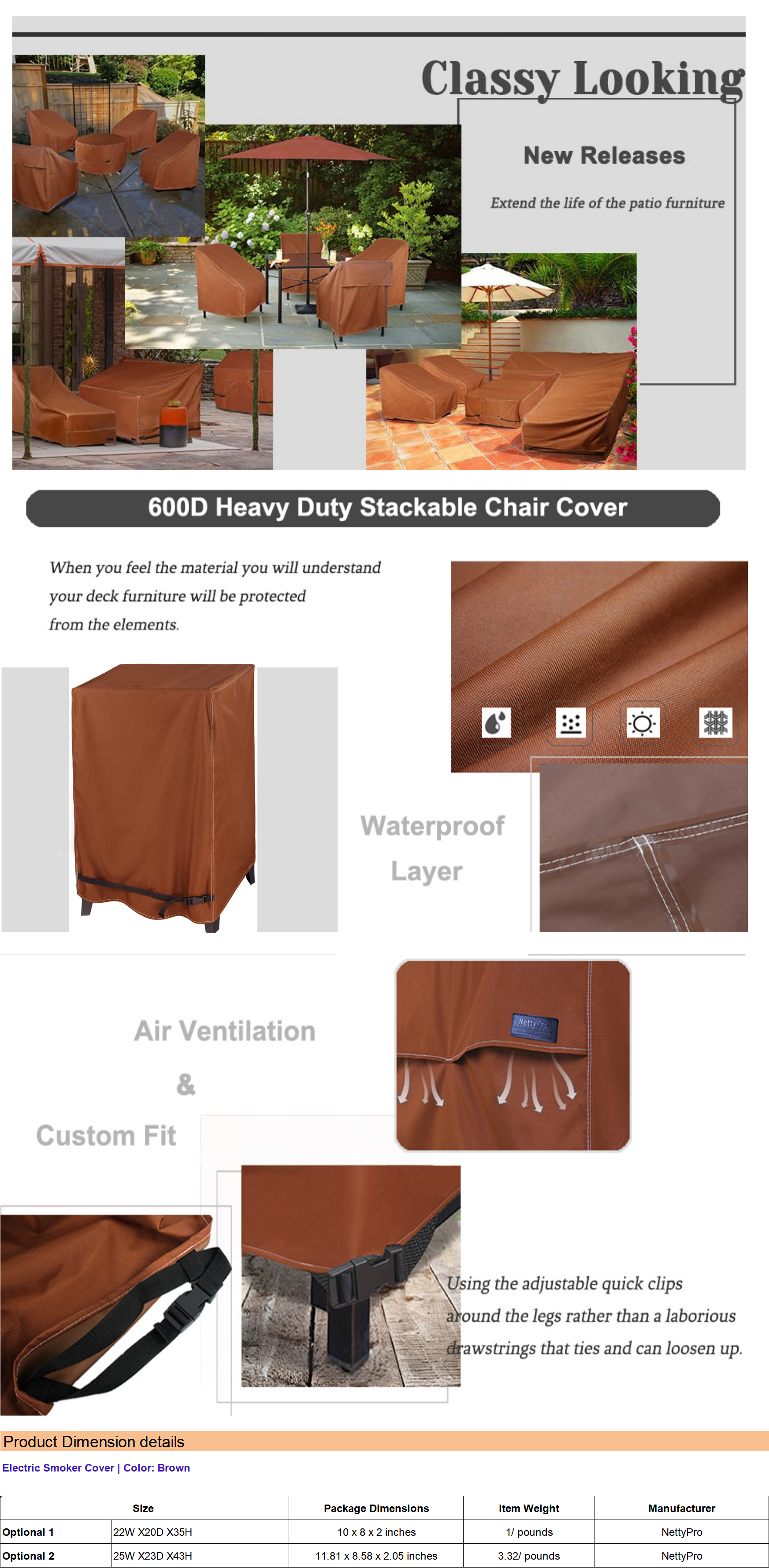 - NettyPro Electric Smoker Cover 19" 32" 40" Inch Waterproof Heavy Duty Outdoor Patio Square Grill Smoker Cover,Brown color,Small,medium optional